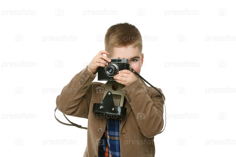 Красивый молодой мальчик с ретро-камерой