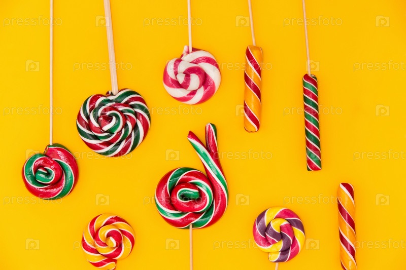 Конфеты на желтом фоне