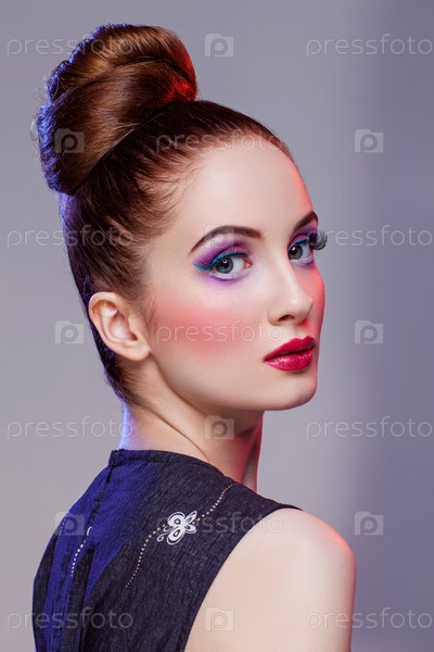 Красивая девушка с прической и ярким макияжем
