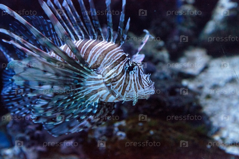 Львиная рыбка Pterois volitans плавает