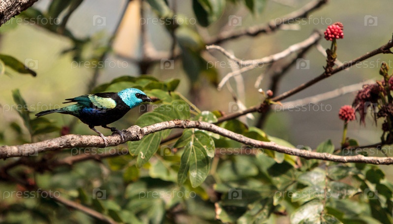 Голубоглазый танагер, научно известный как Tangara cyanicoilis