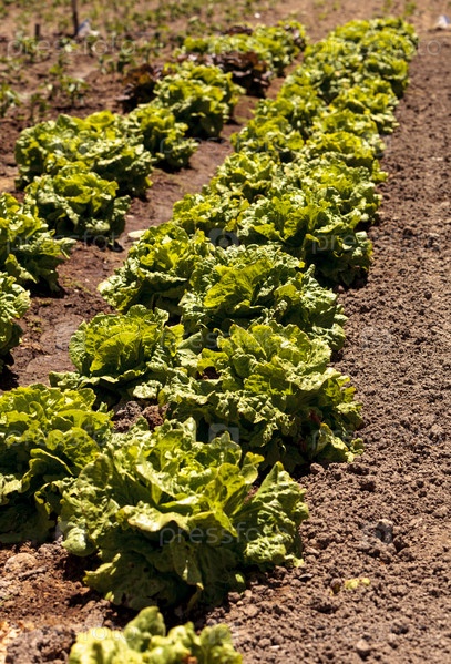 Свежий листовой салат растет на небольшой органической ферме