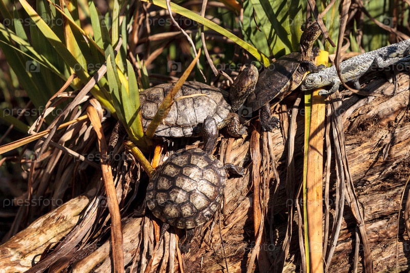 Тихоокеанские прудовые черепахи Actinemys marmorata