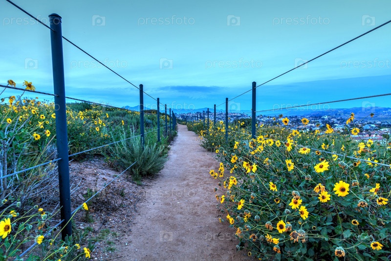 Пешеходная тропа над городом Дана-Пойнт на закате