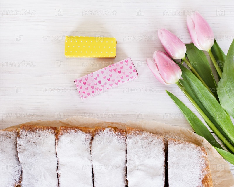 Пирог и весенние цветы