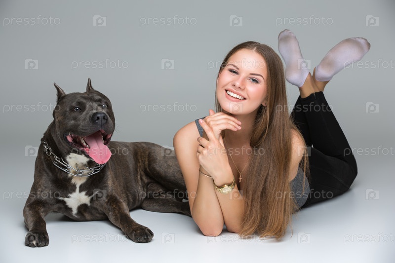 Красивая девушка со стаффордширским терьером