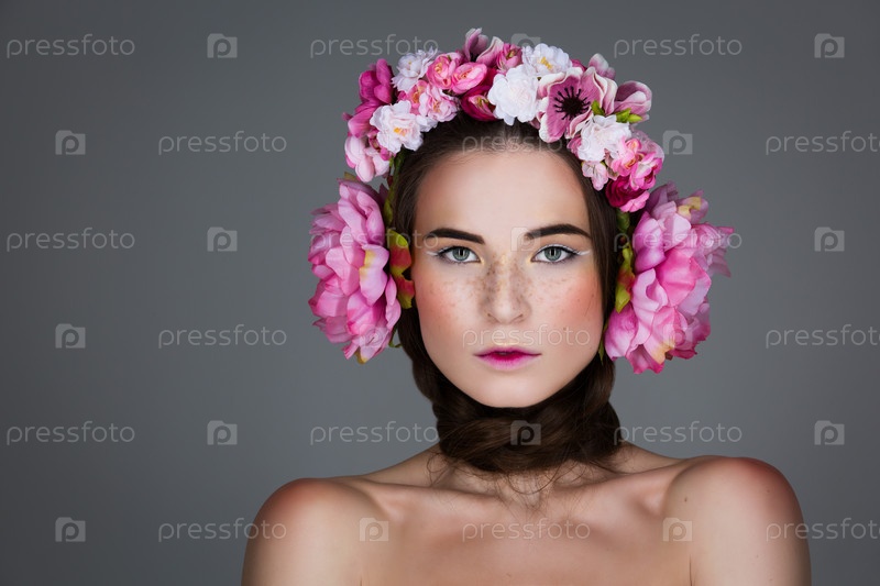 Красивая девушка с цветочными наушниками