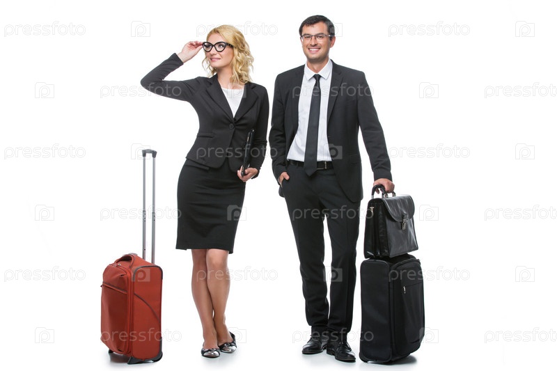 Бизнесмен и деловая женщина с чемоданами