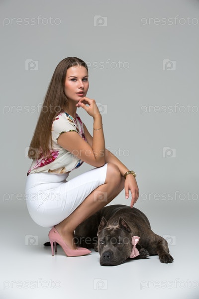 Красивая девушка со стаффордширским терьером