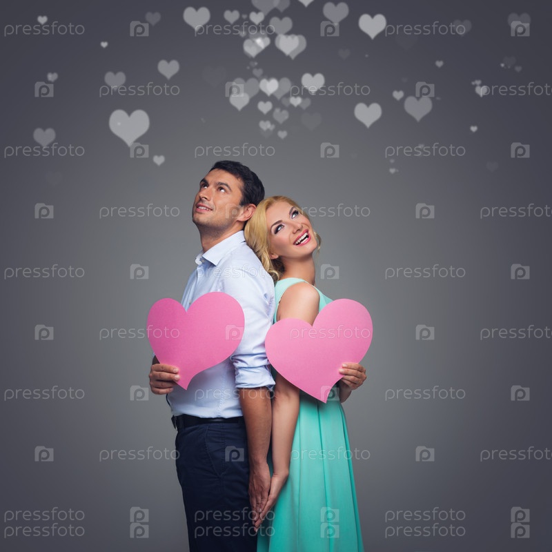 Красивая пара с розовыми сердцами