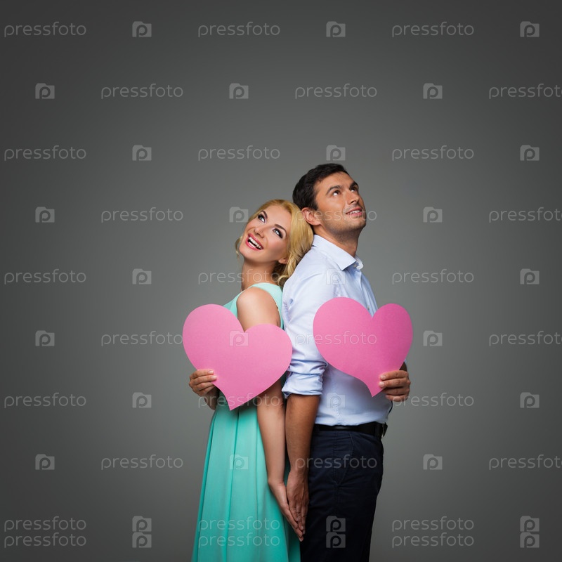 Красивая пара с розовыми сердцами