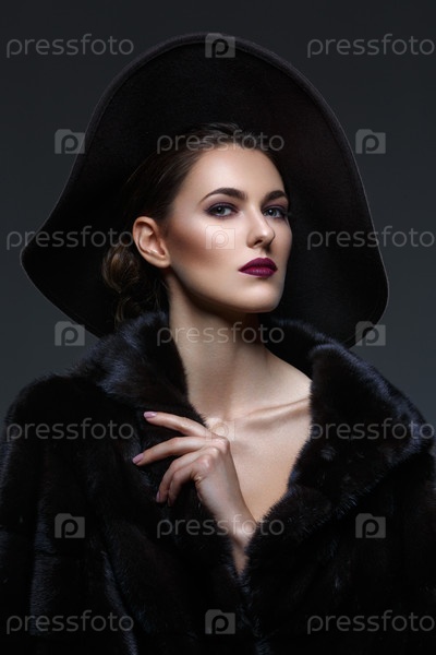 Красивая девушка в шубе и шляпе