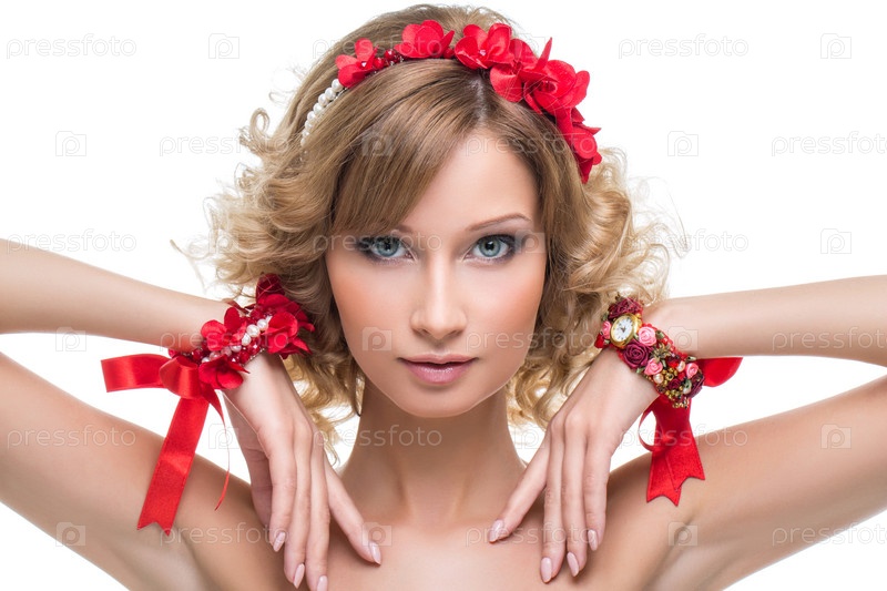 Красивая девушка с красной ленточкой