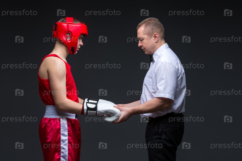 Рефери проверяет молодого боксера
