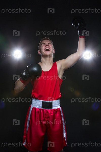 Молодой боксер в красной форме