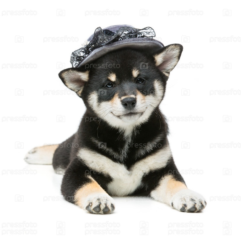 Красивый щенок шиба-ину в серой шляпе