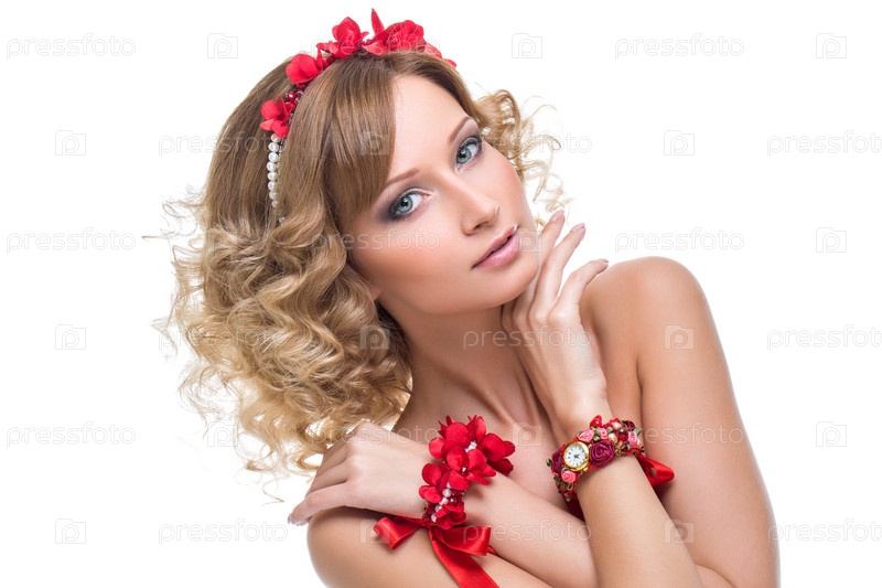 Красивая девушка с красными ленточками