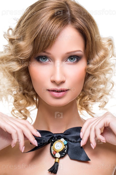 Красивая девушка с черным бантом