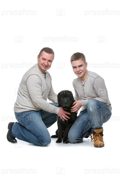 Отец и сын с собакой