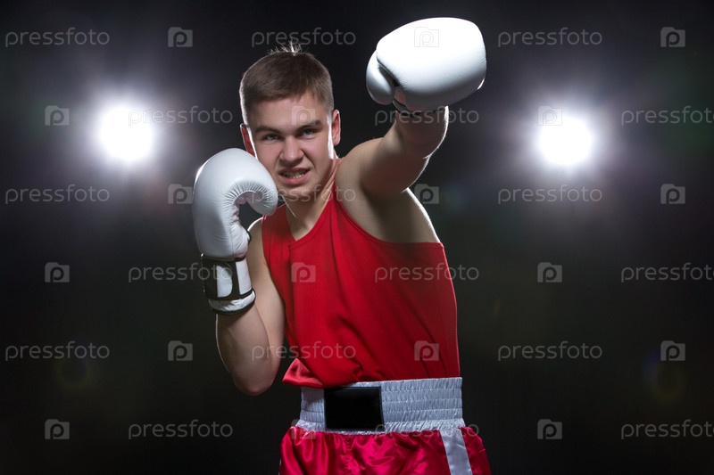 Молодой боксер в красной форме