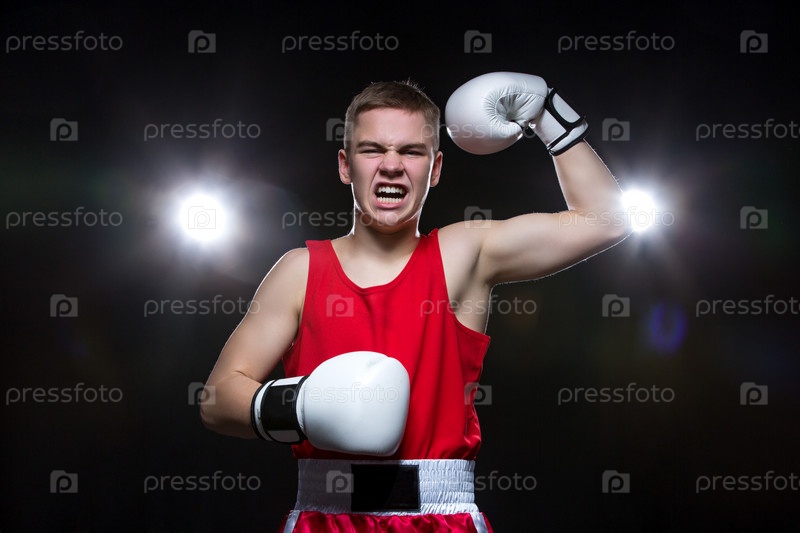 Молодой боксер в красной форме