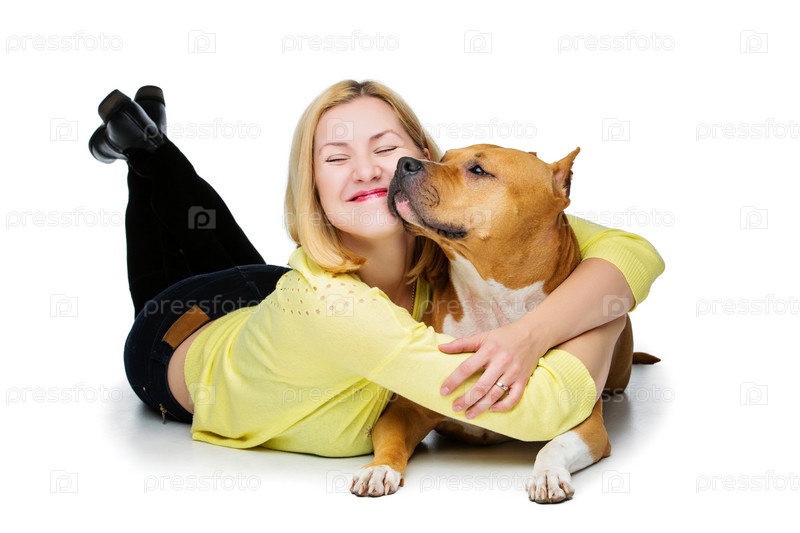 Красивая девушка со стаффордширским терьером