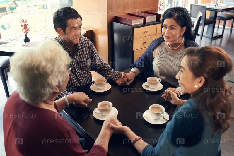 Пожилые друзья в кафе