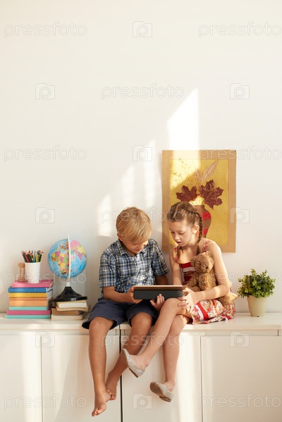 Дети с планшетным компьютером