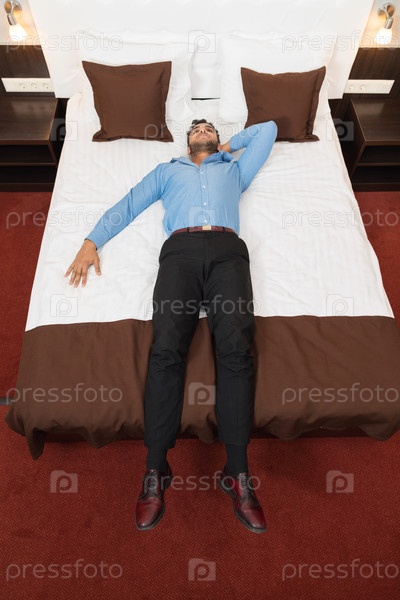 Деловой человек, лежащий в постели