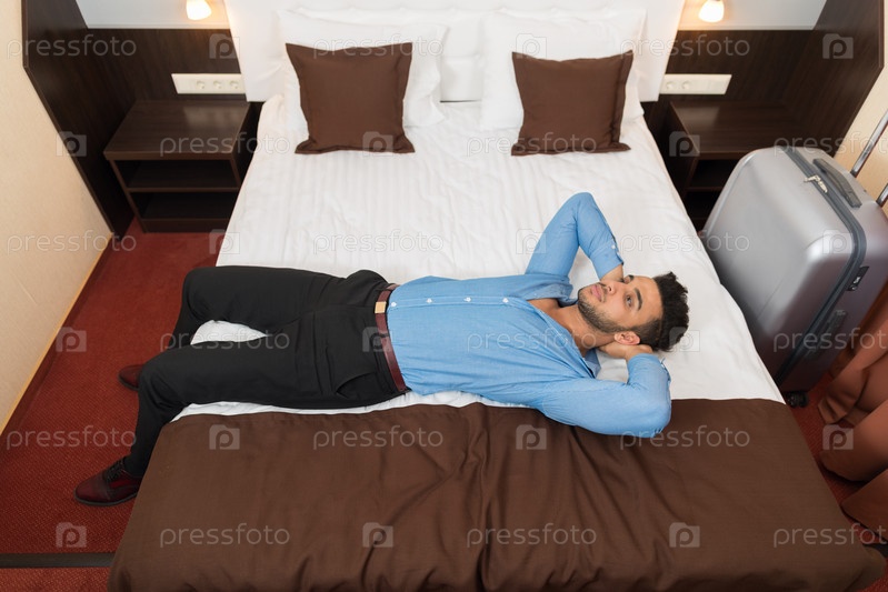 Деловой человек, лежащий в постели