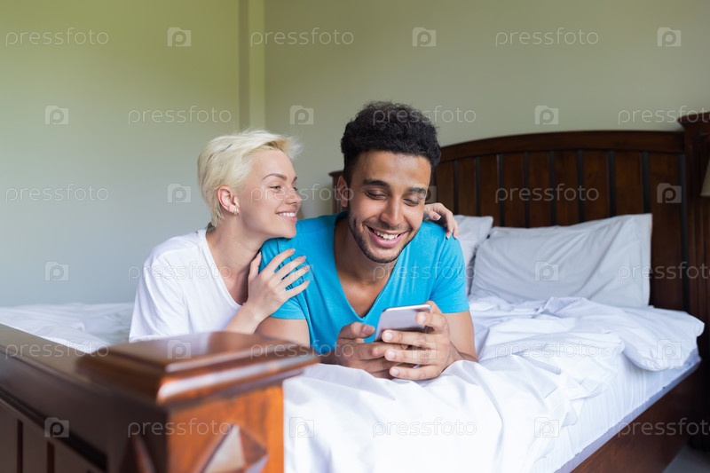 Молодая пара, лежа на кровати