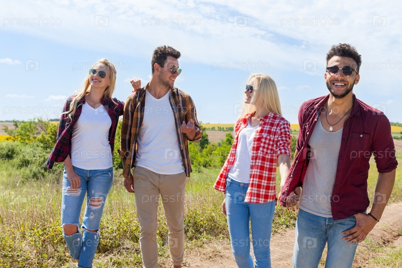 Друзья на прогулке по сельской дороге