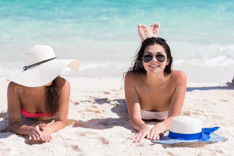 Счастливая улыбающаяся девушка, лежащая на берегу
