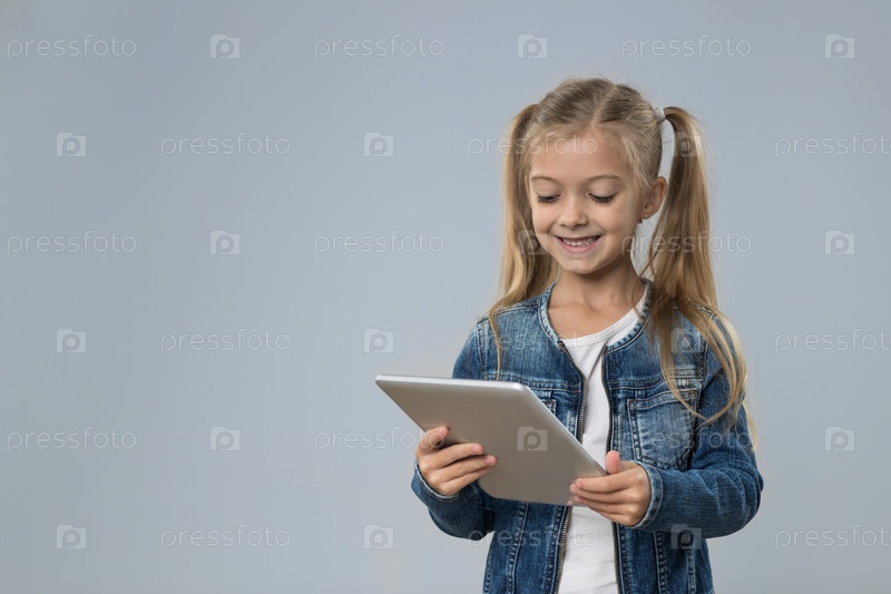 Маленькая девочка-подросток с планшетом