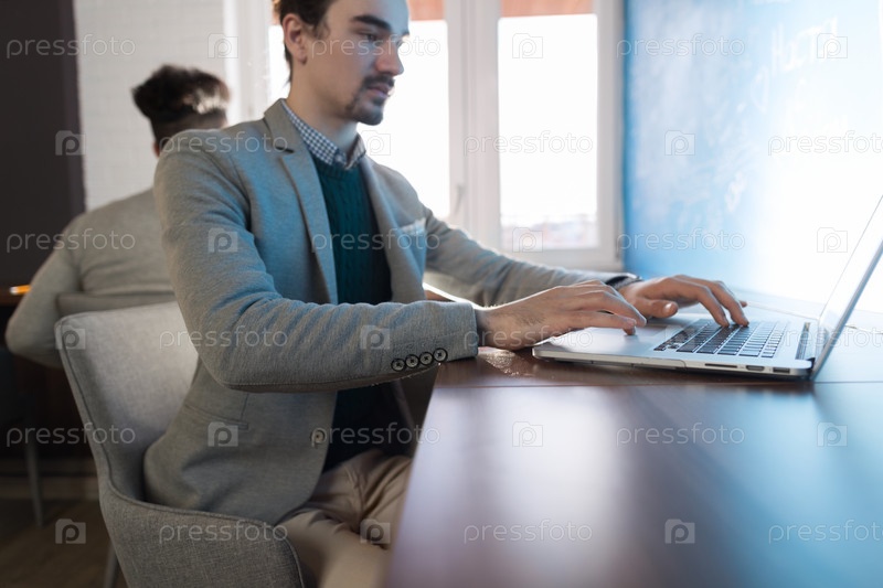 Бизнесмен, используя портативный компьютер