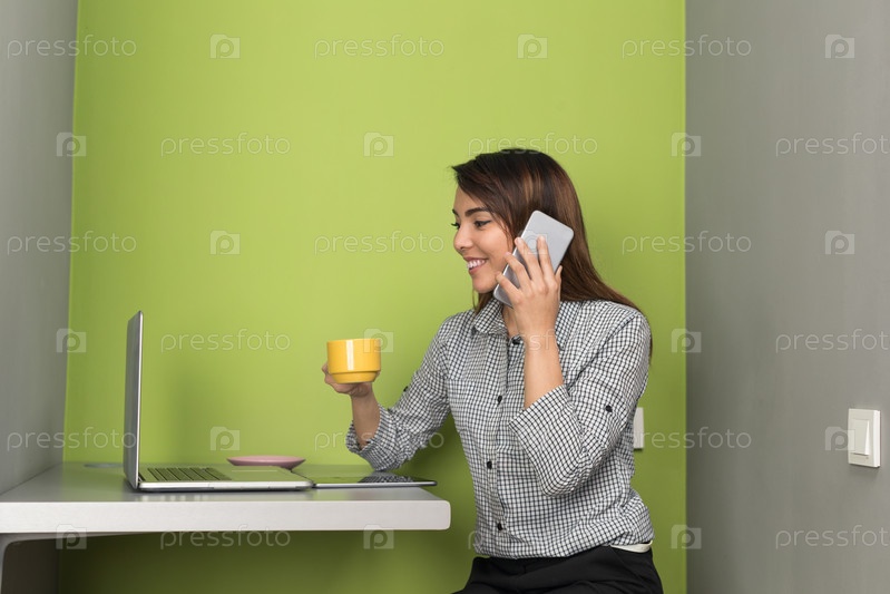 Азиатская женщина с кофе