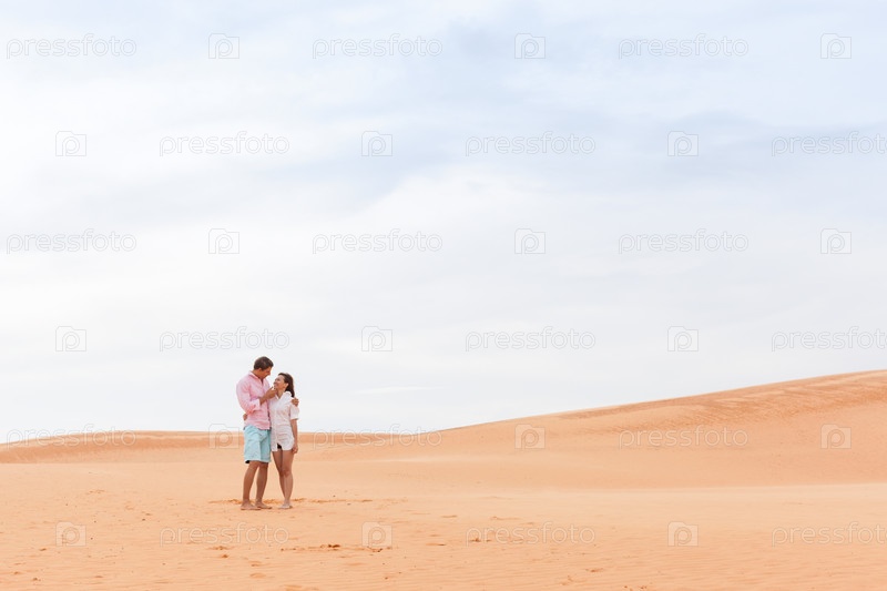 Молодая женщина и мужчина в пустыне