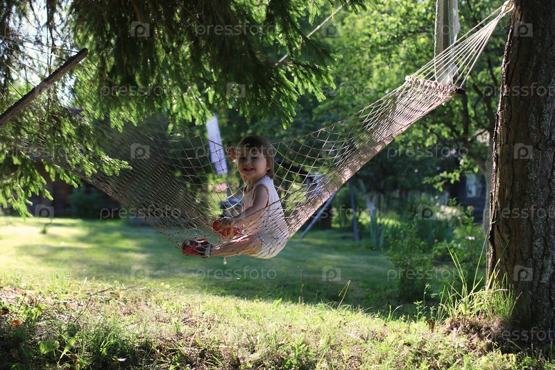 Ребенок в гамаке на природе