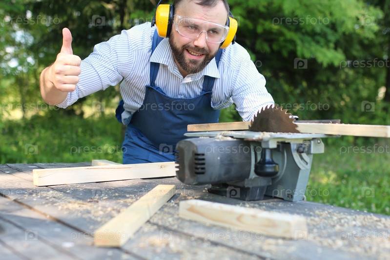 Мужчина пилит доски