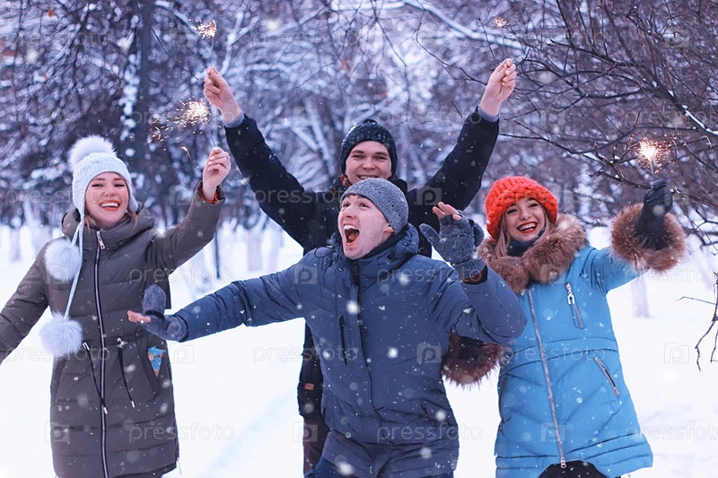 Друзья в зимнем парке