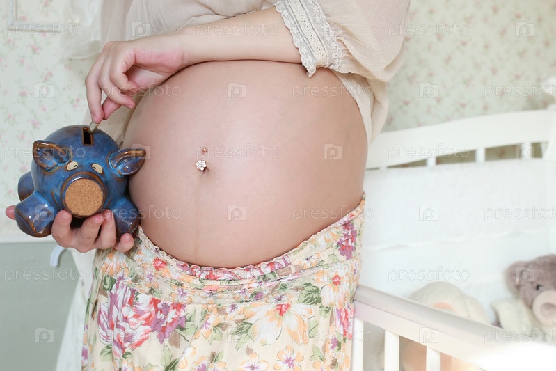 Беременная женщина с копилкой