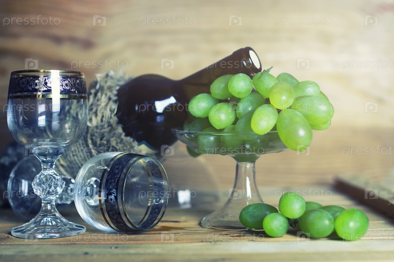 Бутылка вина и виноград