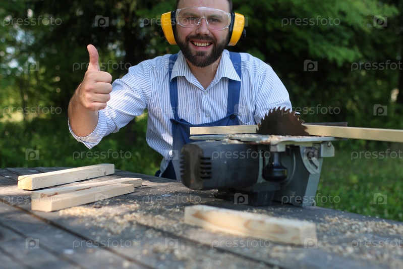Мужчина пилит доски