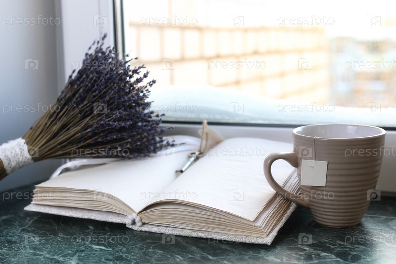 Ежедневник и чай на подоконнике