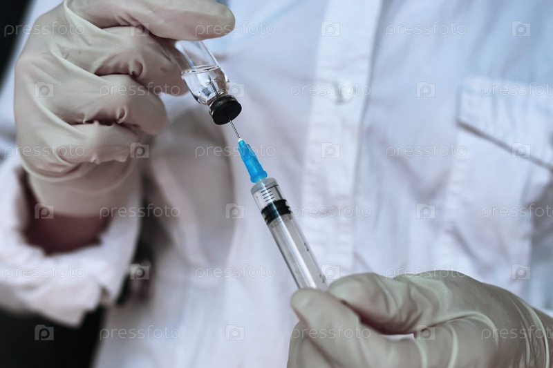 Медицинский работник набирает вакцину в шприц