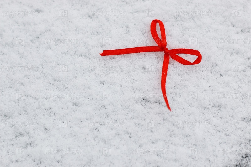 Красный бант на снегу