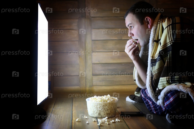 Молодой человек смотрит телевизор
