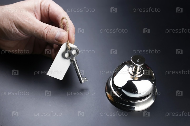 Звонок и ключ на стойке регистрации в отеле
