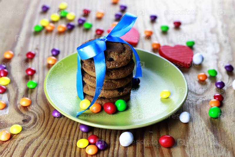 Печенье с лентой на тарелке