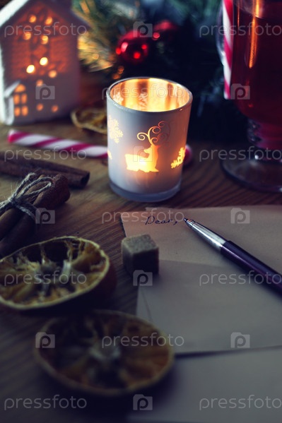 Рождественское письмо на столе со специями